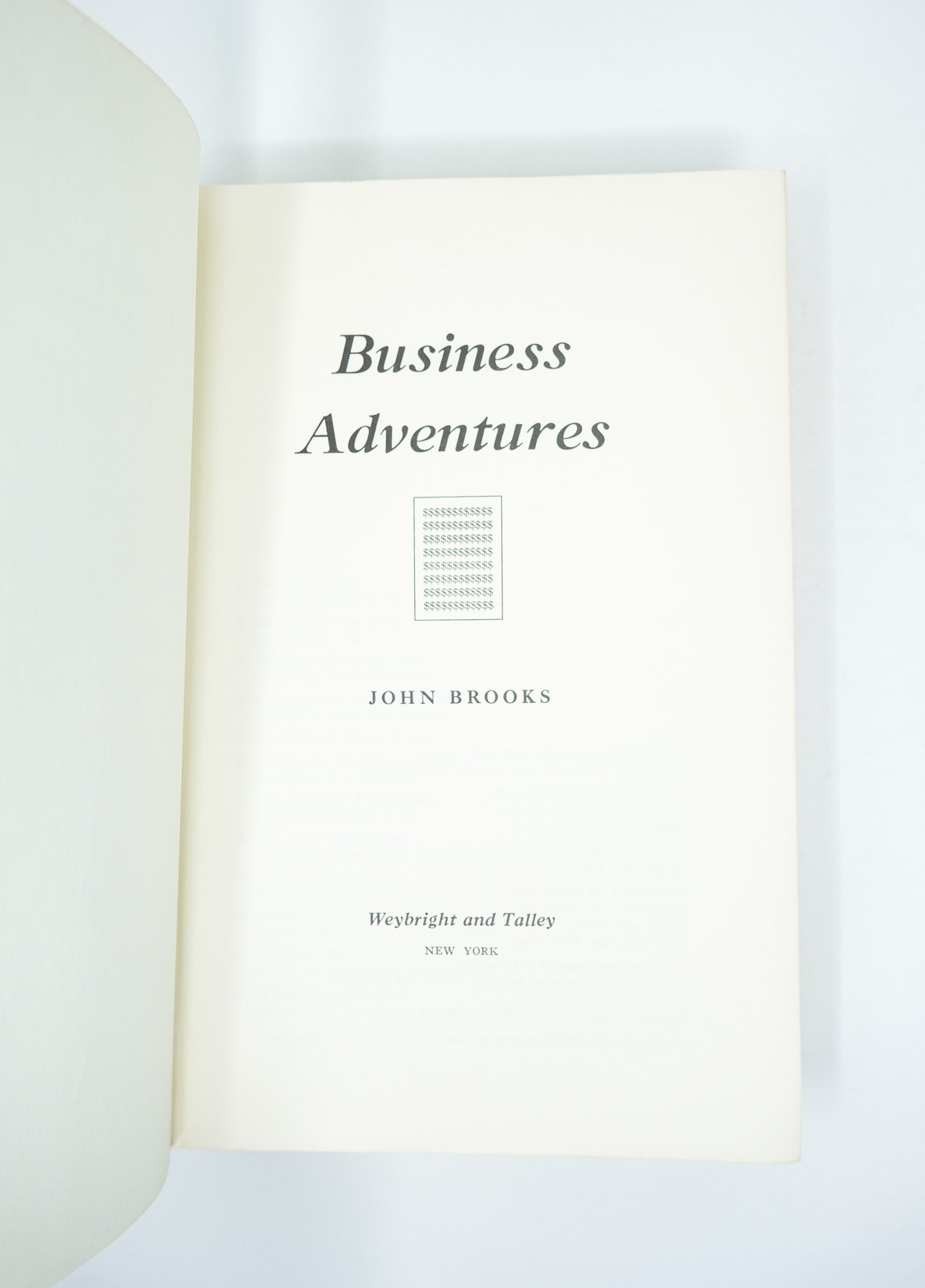 First edition. First printing, with no subsequent printings mentioned on the copyright page. A very good copy in a very good, price clipped dust jacket. Some toning to the spine. A little foxing to the outer text block edges but the contents fine. A moderate lean to the spine - the binding firm but askew. Some edgewear and very small closed tears to the dust jacket but a very nice example overall. A classic in its genre, Business Adventures brilliantly chronicles dramatic moments in corporate and financial history, offering valuable insights into human nature and decision making. To this day it is endorsed as a source of wisdom by leading figures in business and finance. Scarce in the true first edition.