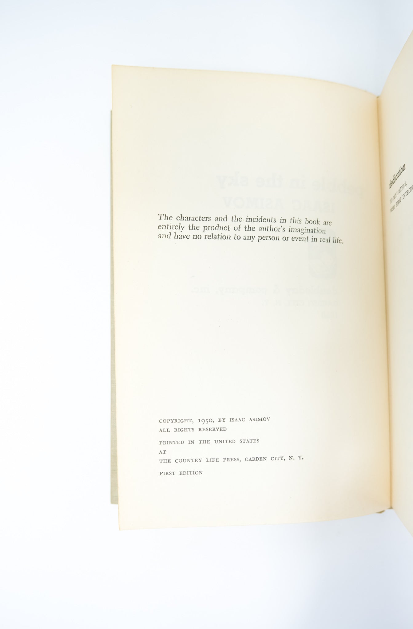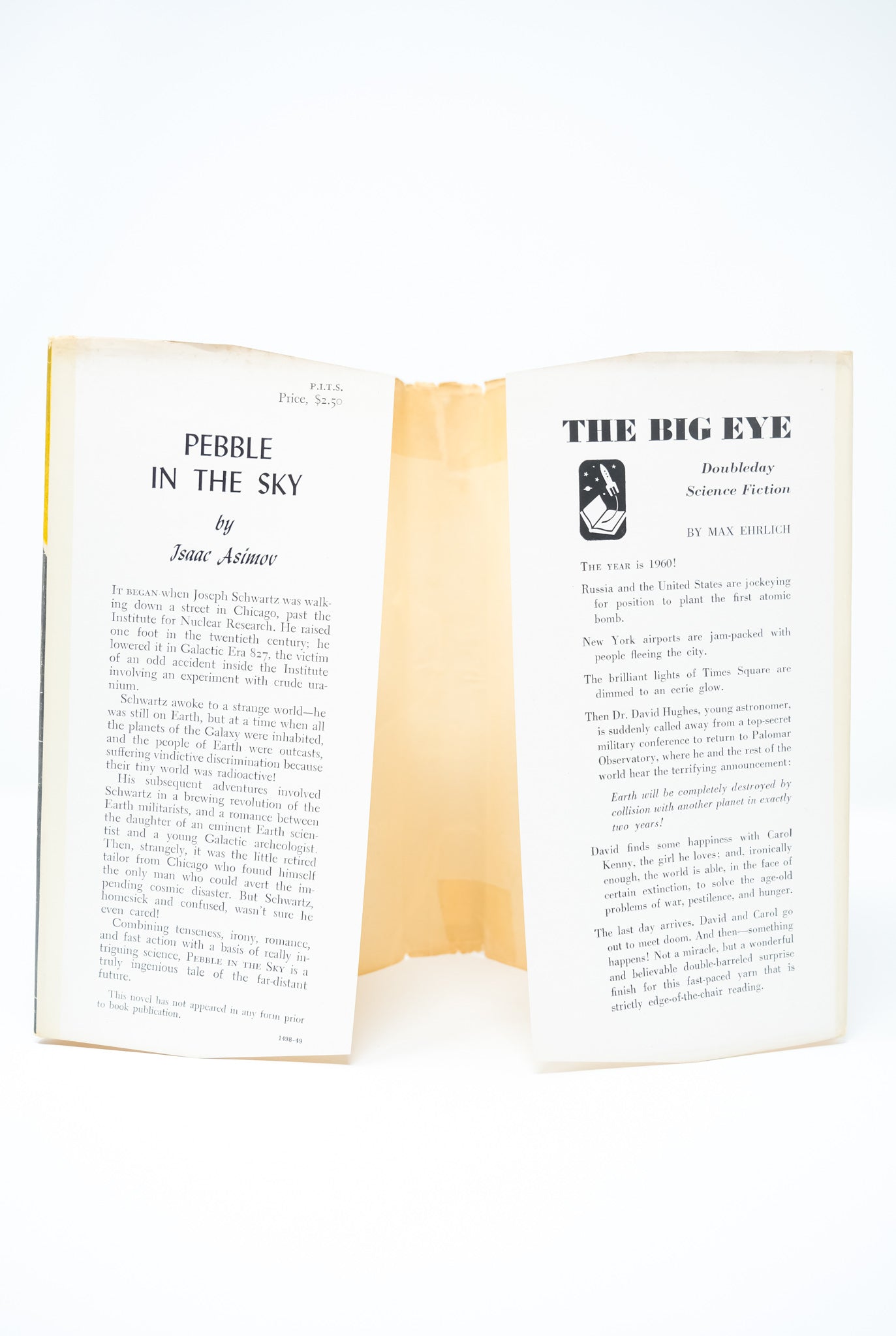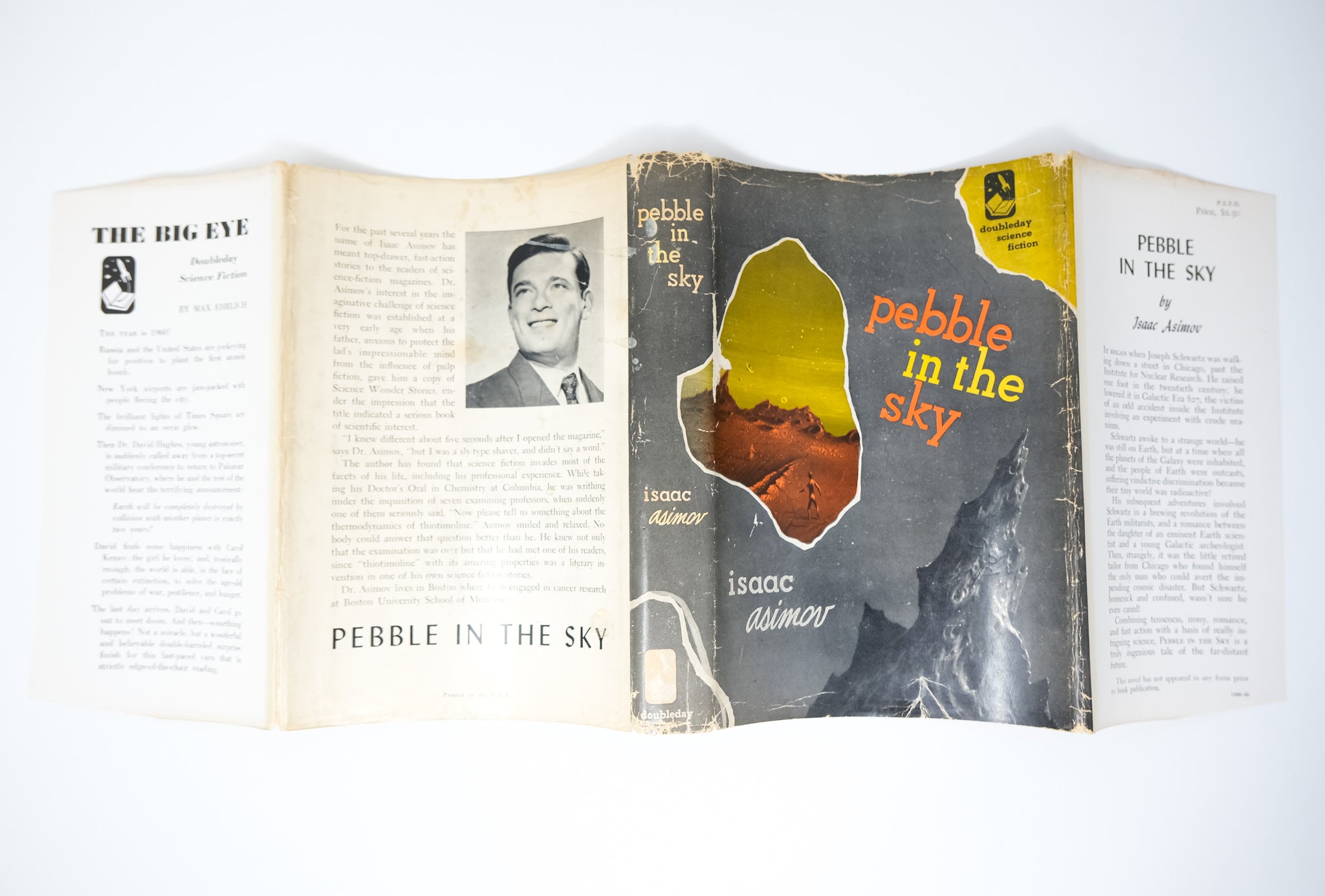 First edition. First printing. A near fine copy, only with the slightest foxing to the top edge of the outer text block. The contents fine. In a very good only, unclipped dust jacket. Some scuffing and a few faint blemishes, the extremities a bit worn and chipped. Discrete tape reinforcements at the verso. A very nice copy still. The very first of Asimov’s science fiction novels, which would see numerous reprints. Pebble in the Sky launched the Empire Series, imagining a future Galactic empire “which has forgotten that Earth was humanity's original home.” Asimov would go on to write over 500 books, and is remembered as one of the “Big Three” writers of science fiction, alongside Robert Heinlein and Arthur Clarke.