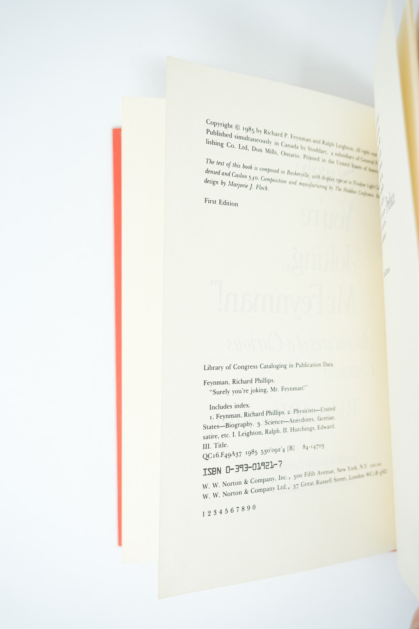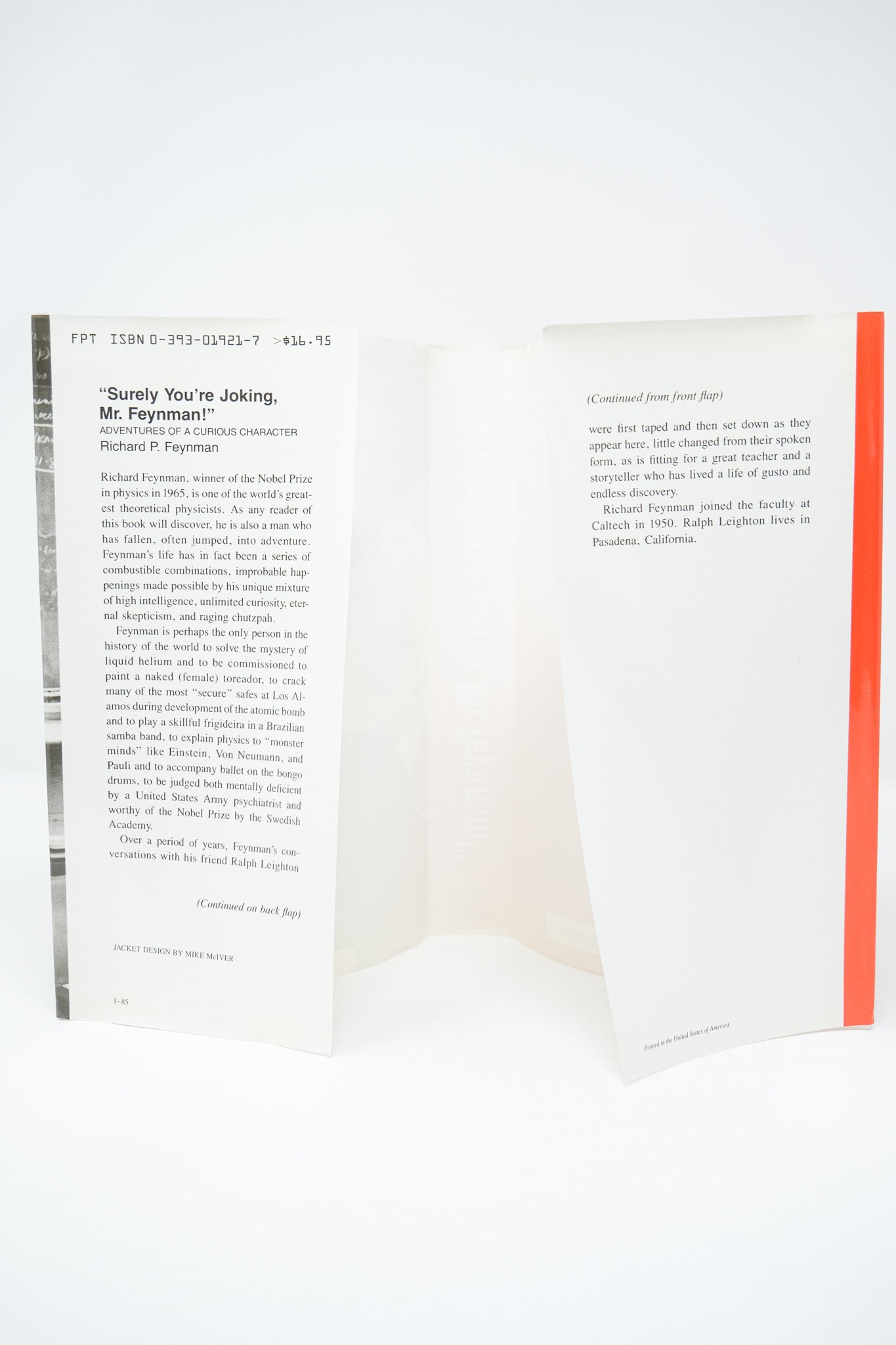 First edition. First printing. In the unclipped first issue dust jacket with two reviews on the rear panel. Advance proof copy, with “43546” on the upper corner of the first free endpaper, in the publisher’s faint hand stamp. A fine copy in a fine dust jacket, with virtually none of the sunning usually found on the spine - and very uncommon as such. Proof copies were sent to Feynman’s office at the California Institute of Technology in the fall of 1984, in advance of the January 1985 release of the book. Most were then given to close friends and colleagues. It is estimated that Feynman only received between 16 and 25 of these copies. An exceptionally desirable example of the legendary memoir. This is the only non-technical book Feynman published - a highly entertaining, humanist look into one of the greatest scientific minds of the 20th Century.