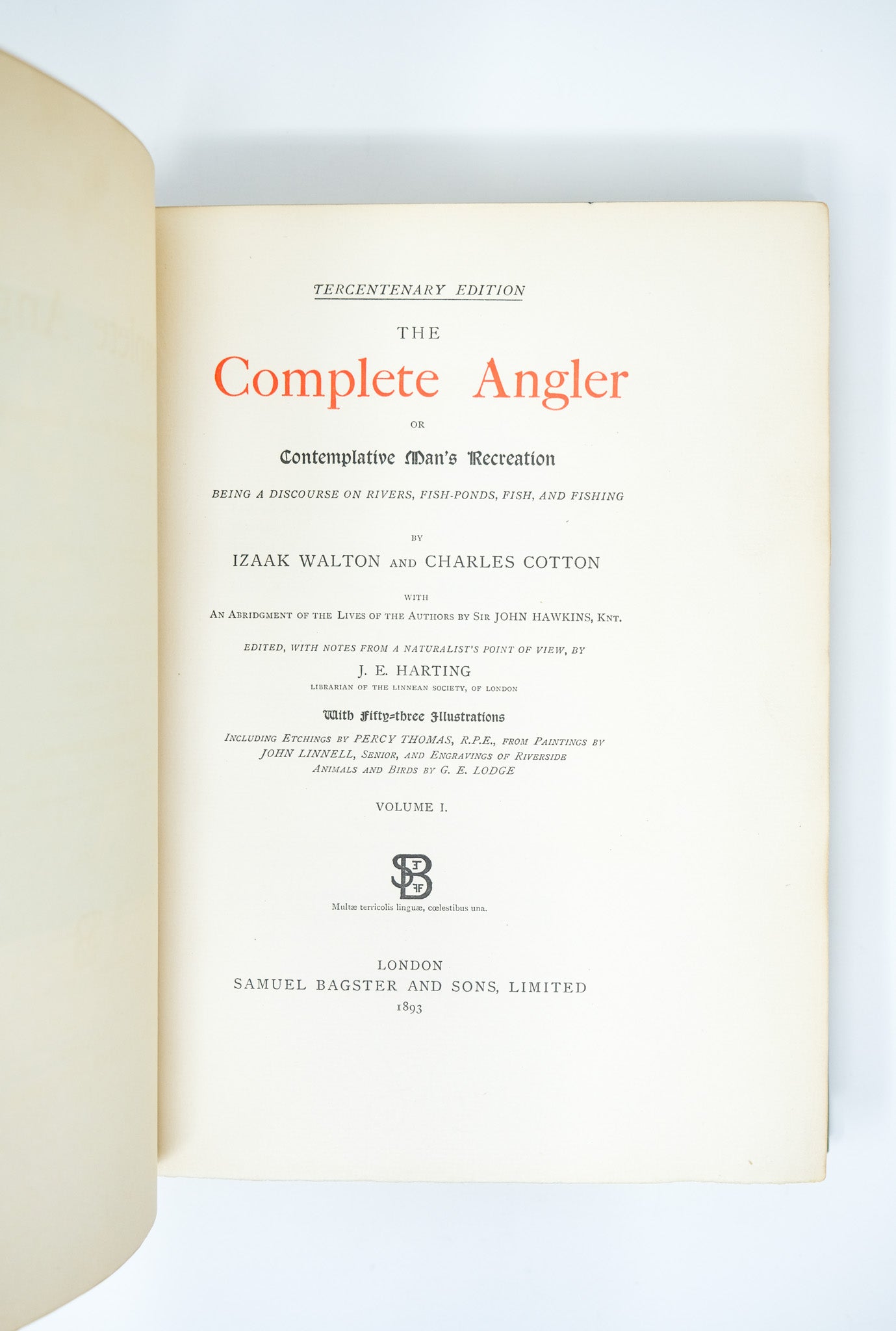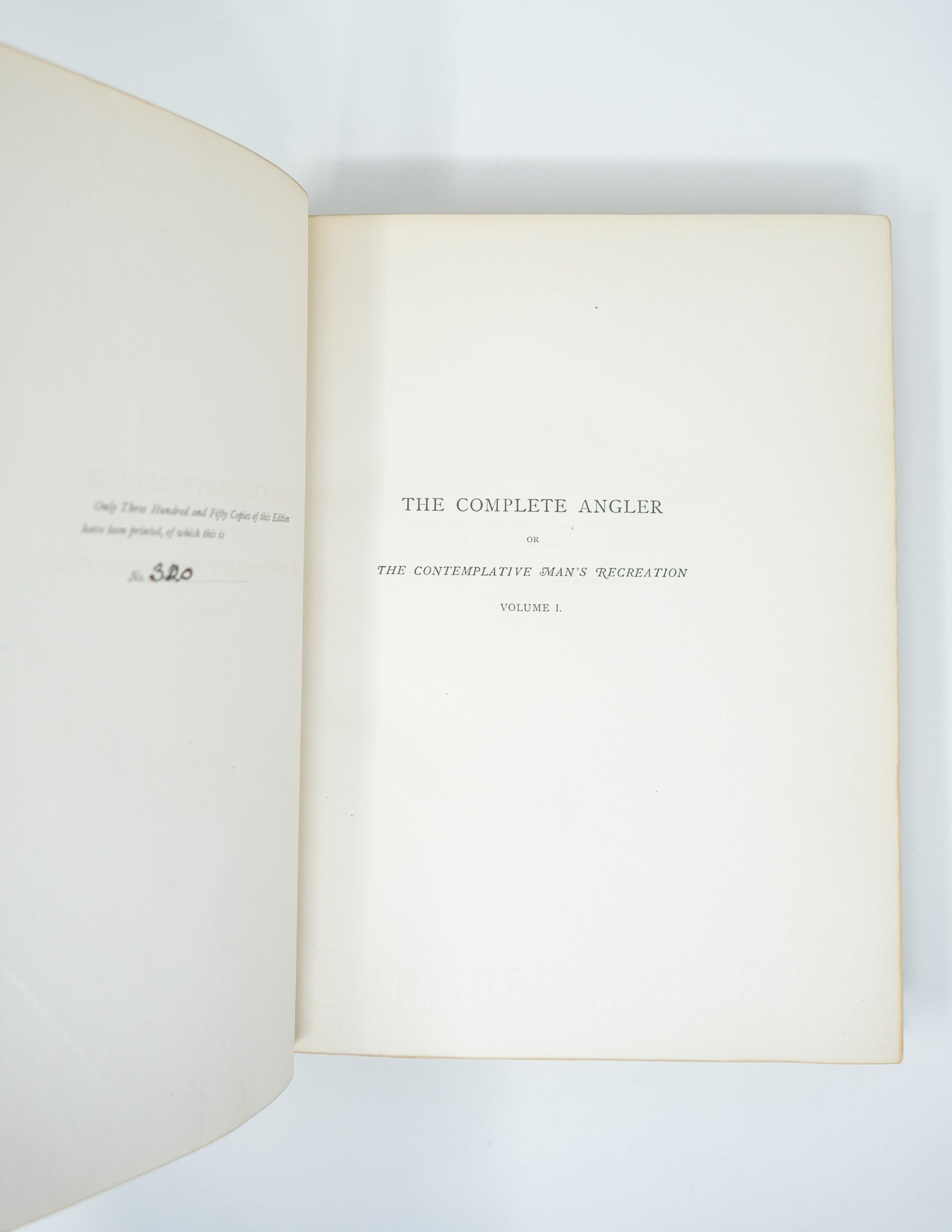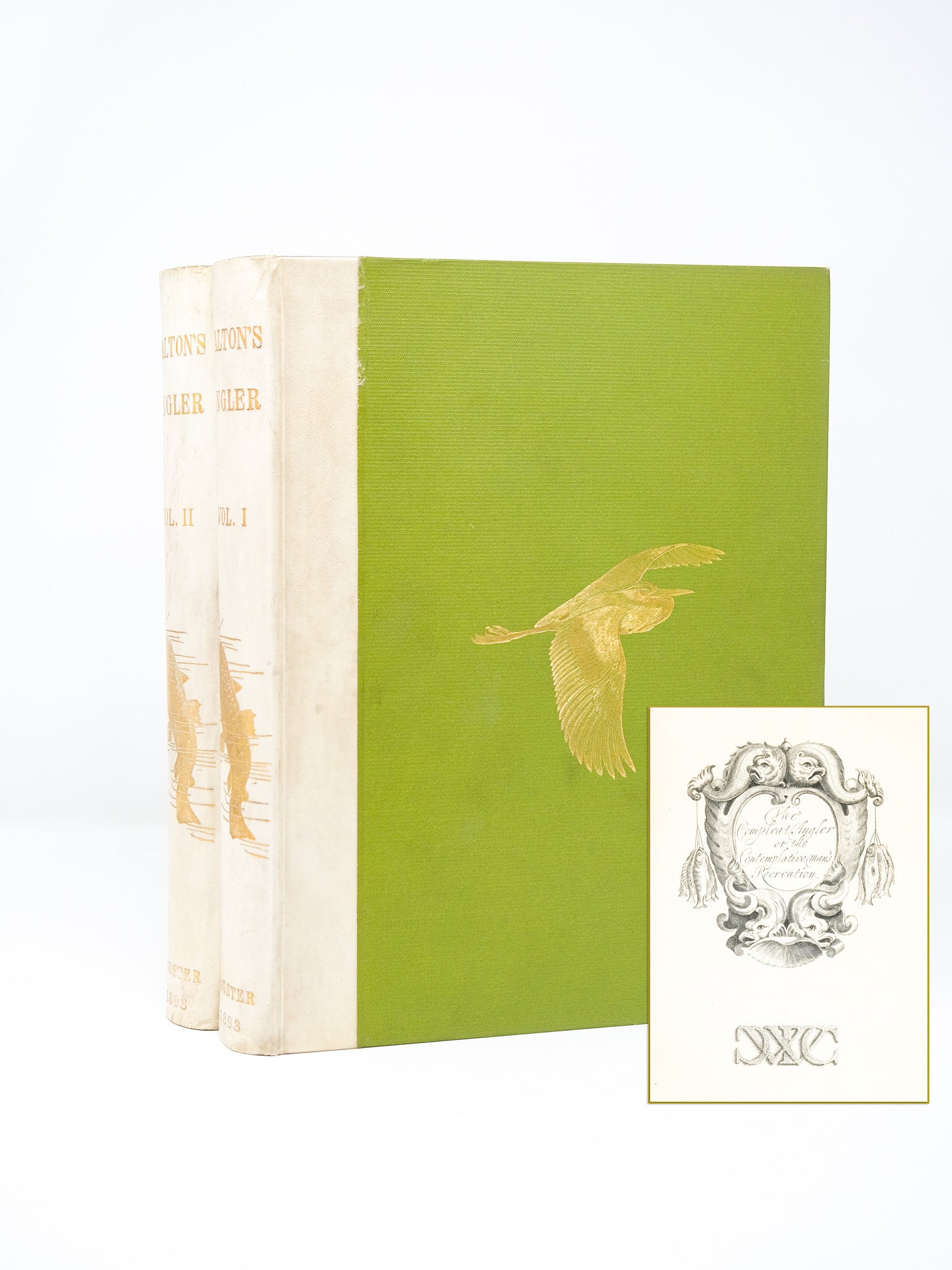 Tercentenary edition, limited to 350 numbered copies. Two volumes in white vellum over green cloth, with the top edges in gilt. Blank bookplates to the pastedowns. A small tear at the top of the rear free endpaper. Very slight wear to the vellum and bumping to the corners, but otherwise a near fine set. Engravings and printed illustrations throughout, with 32 plates on Japon paper. A very impressive production in homage to the 1653 original, and a testament to the enduring popularity of Walton’s work over centuries. The foundational text of angling literature, long celebrated as both a practical and philosophical guide to the sport, promoting harmony between man and the natural word.