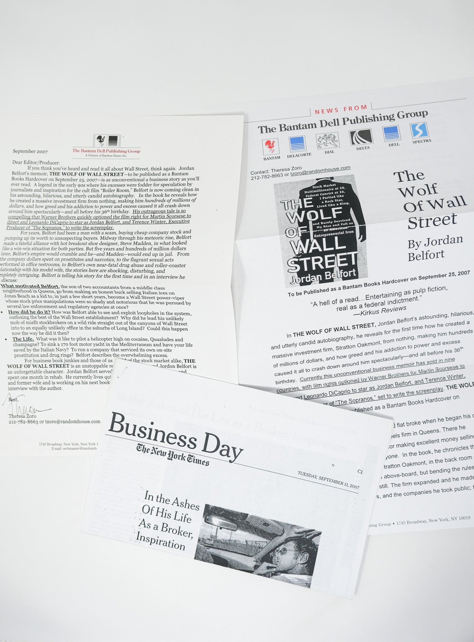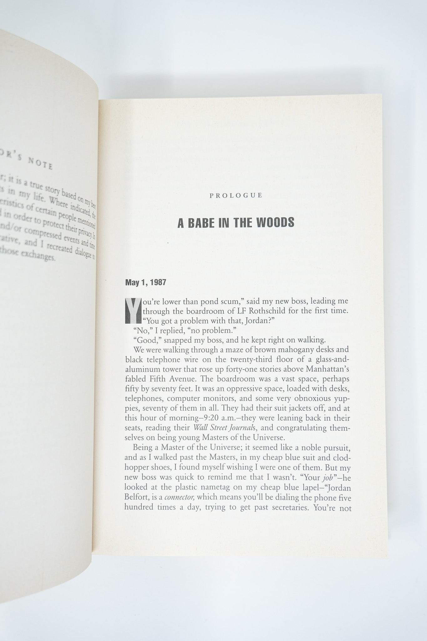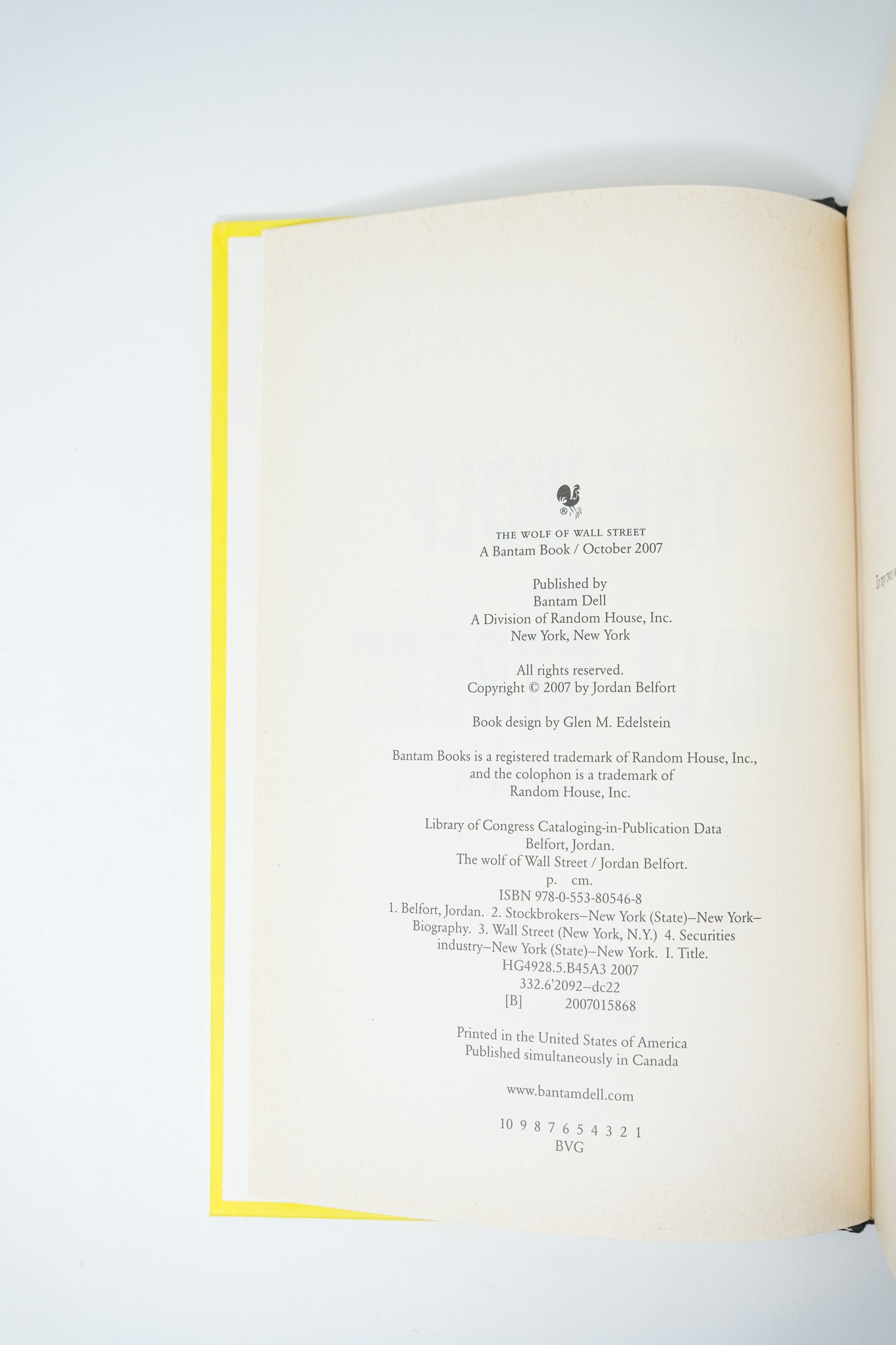 First edition. First printing. Advance review copy, with pre-publication promotional material laid in. Toning to the outer text block and faint foxing to the margins of the pages, as is frequently seen with this title. Little traces of sunning to the dust jacket, and a single tiny closed tear at the bottom right corner (less than 1/4”). Still an all but fine copy in like jacket. A very bright example of Belfort’s memoir, uncommon in the true first edition. An excessively entertaining cautionary tale, now a fixture in popular culture following the 2013 film adaptation.